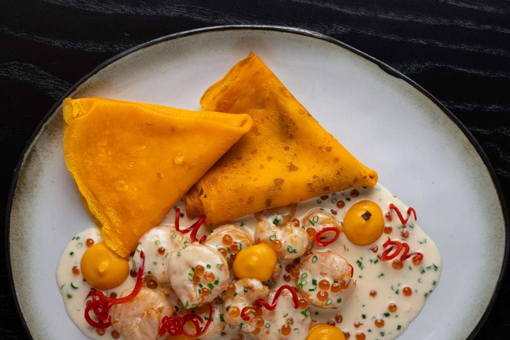 А на компанию рекомендуют большой блинный сет – несколько видов блинов подают с различными топпингами: от камчатского краба, красной икры и мурманского лосося до кубиков спелого манго, ягодного варенья и деревенской сметаны.